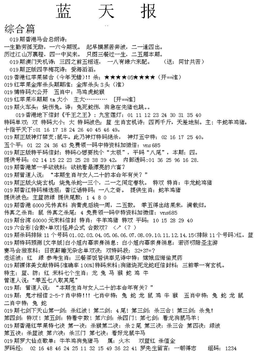 老版天机报