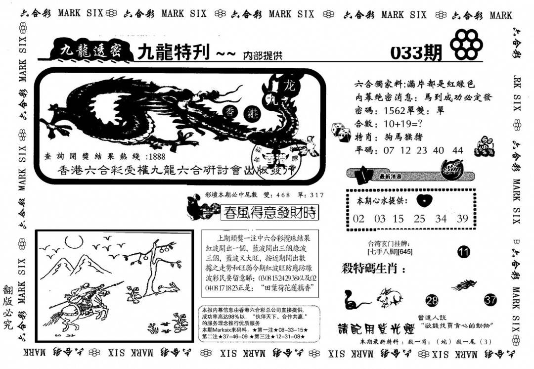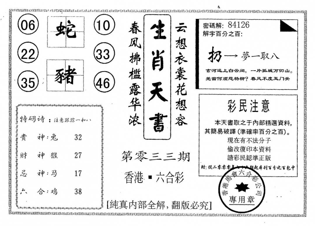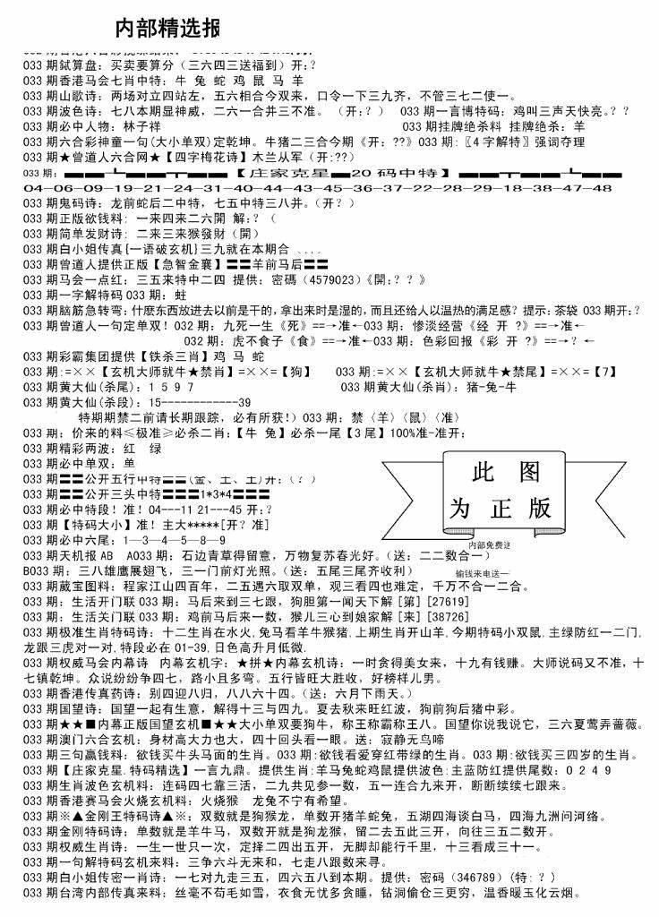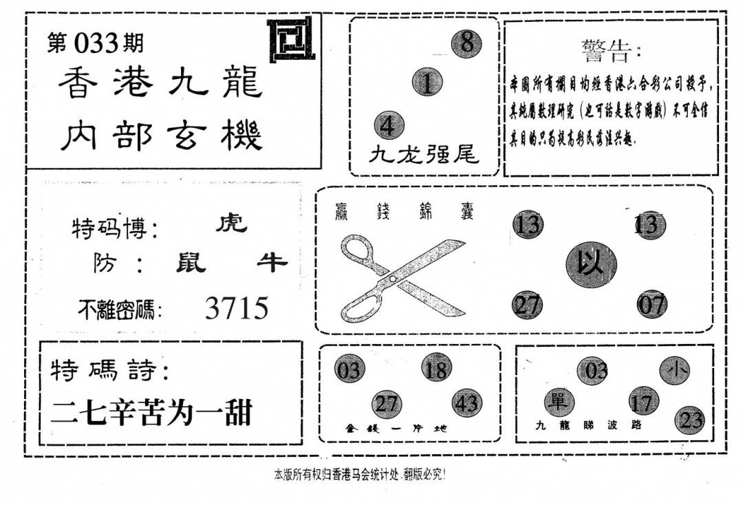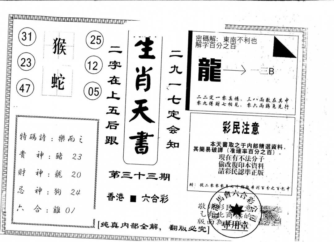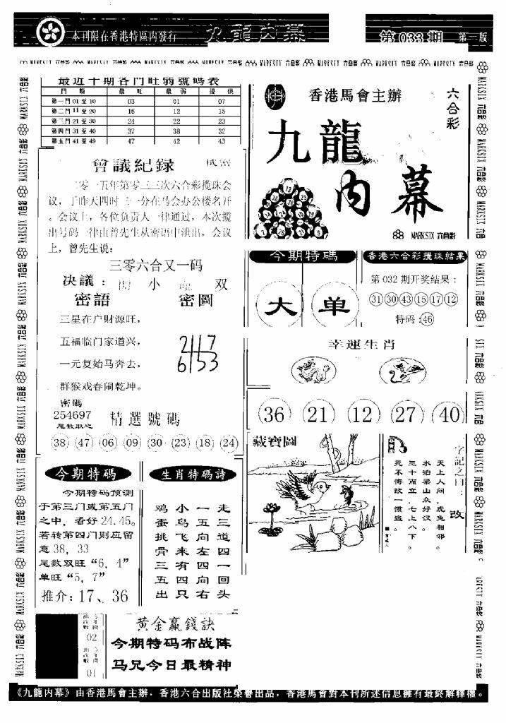 九龙内幕--开奖报