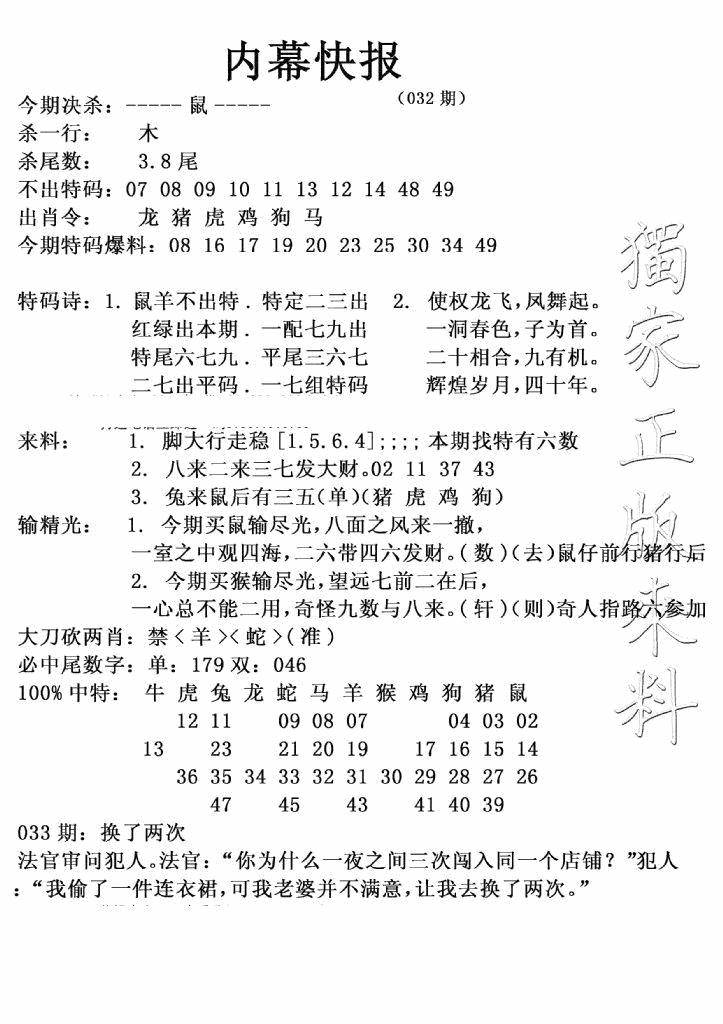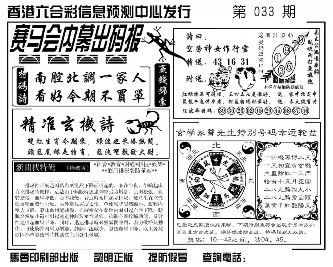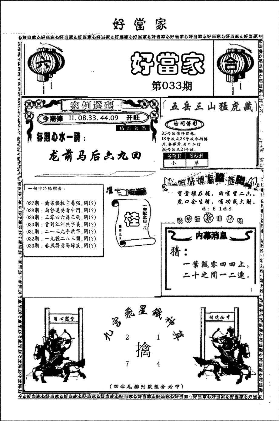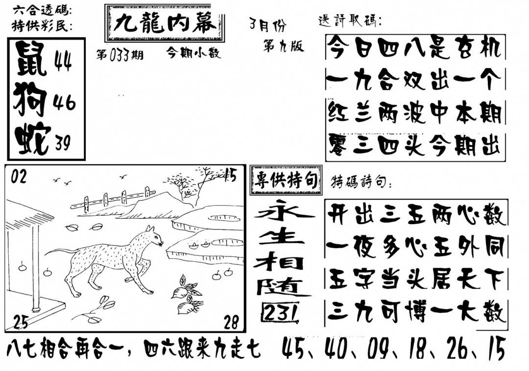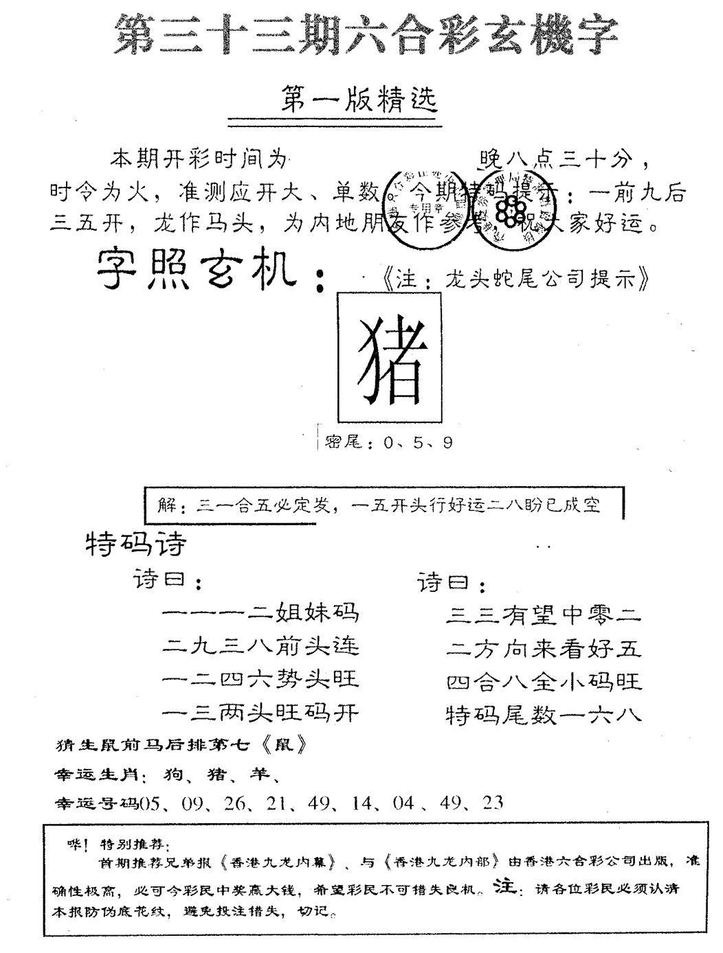 九龙内幕--开奖报