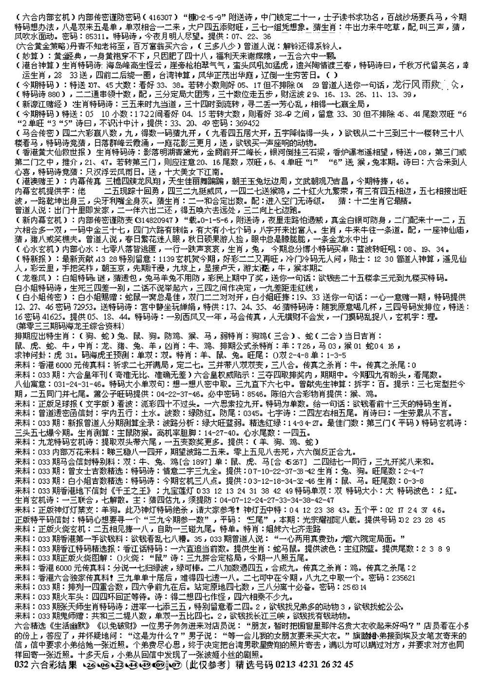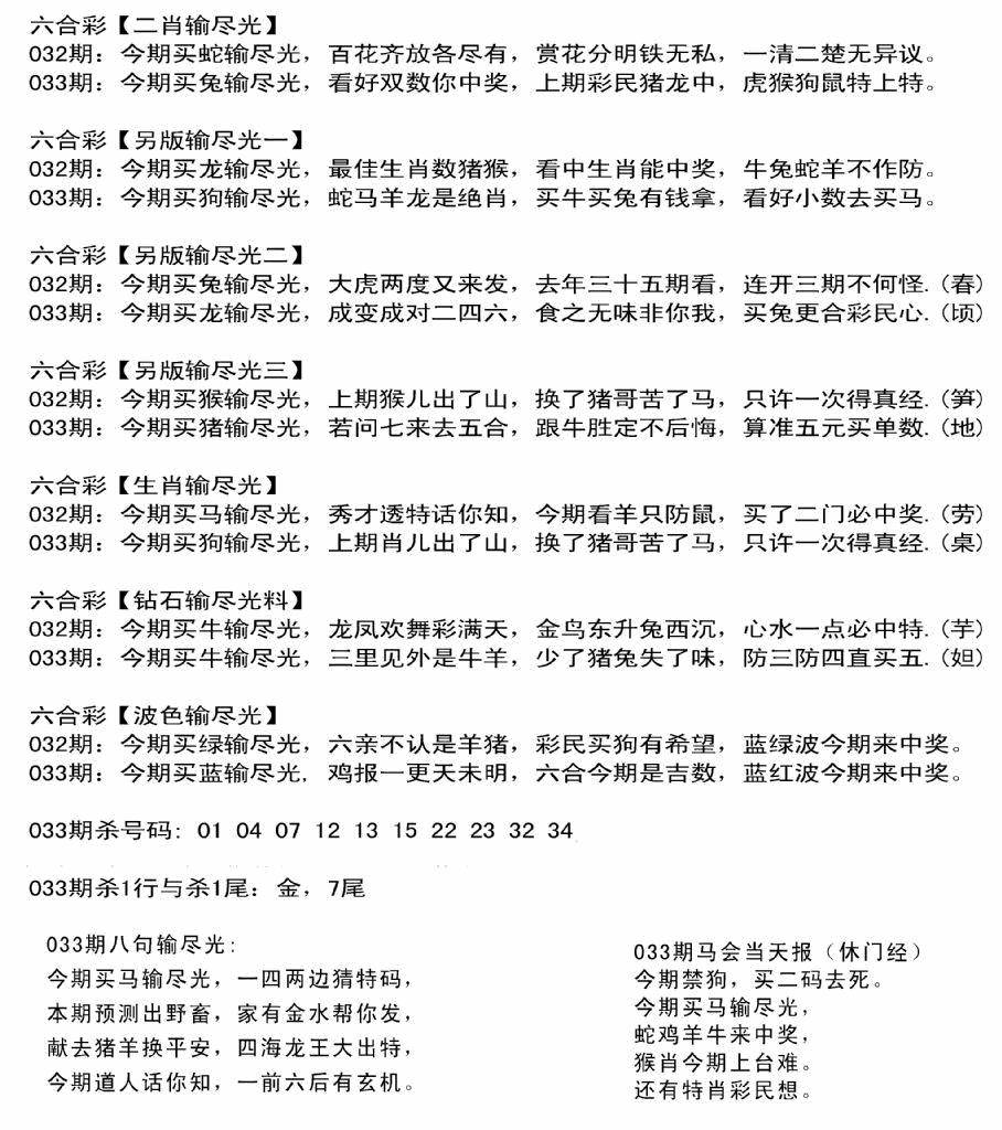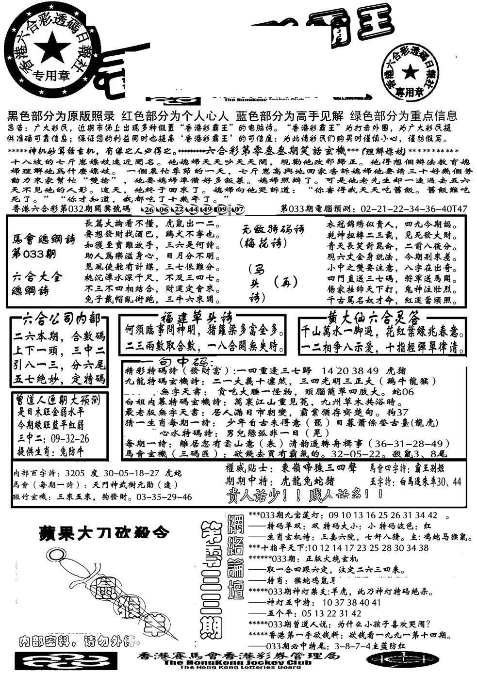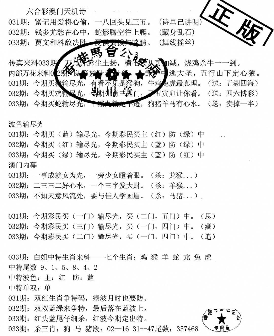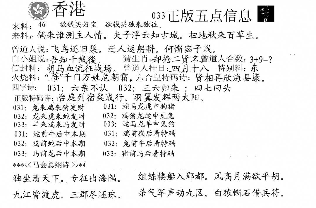 九龙内幕--开奖报