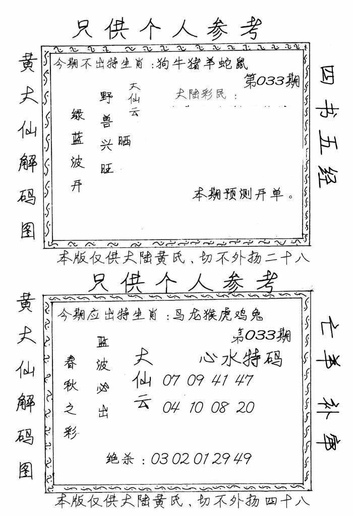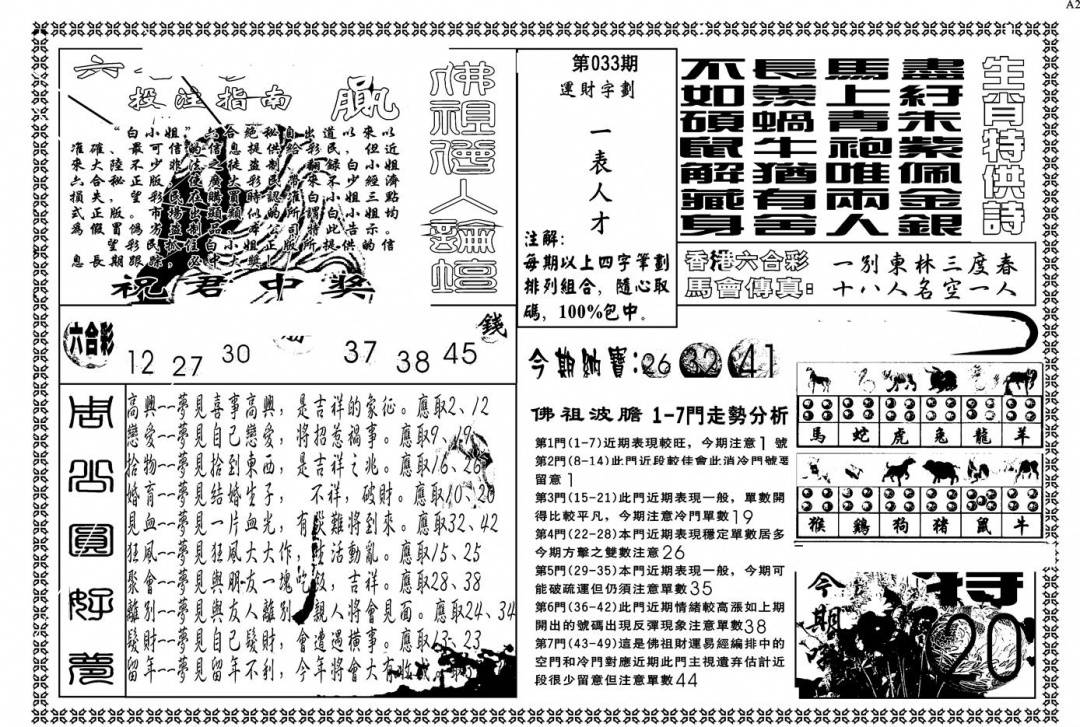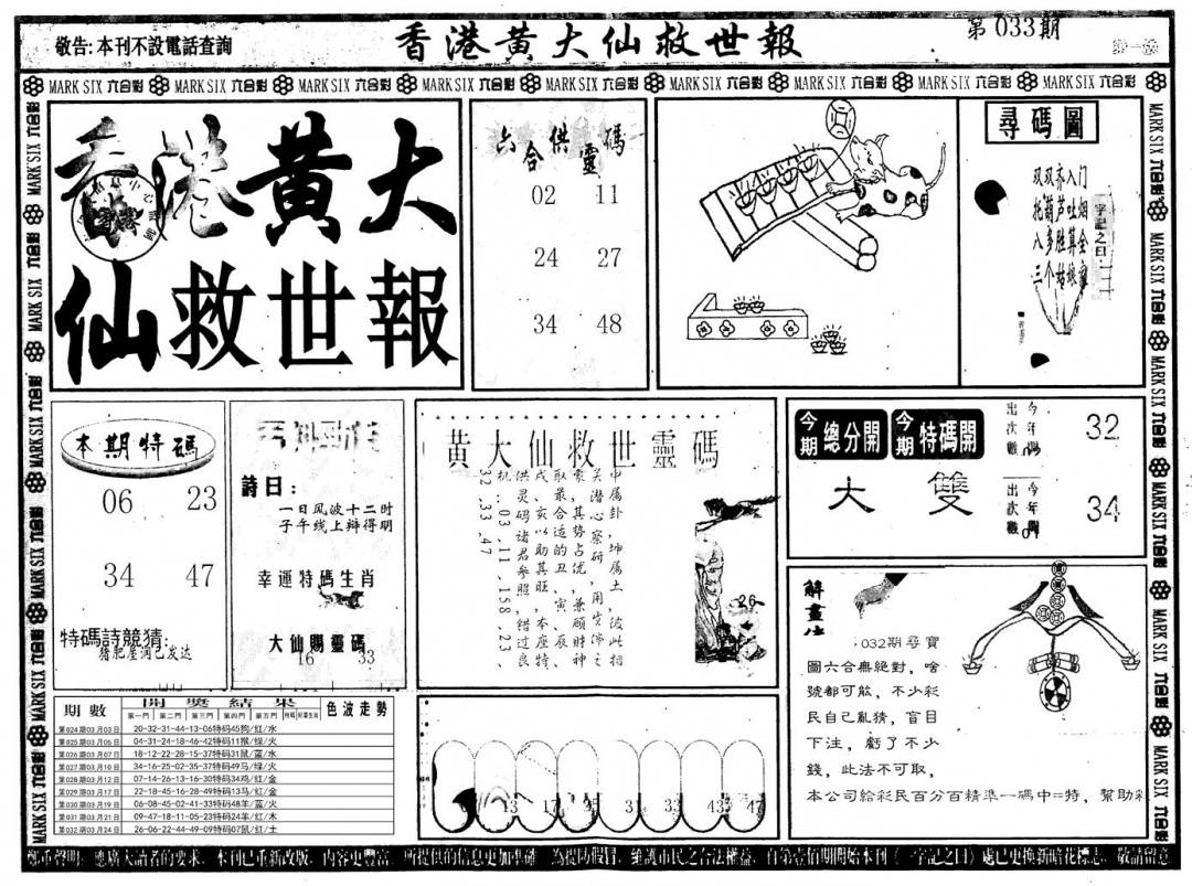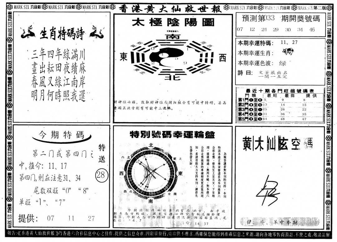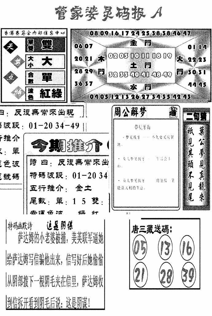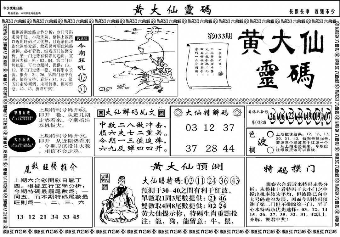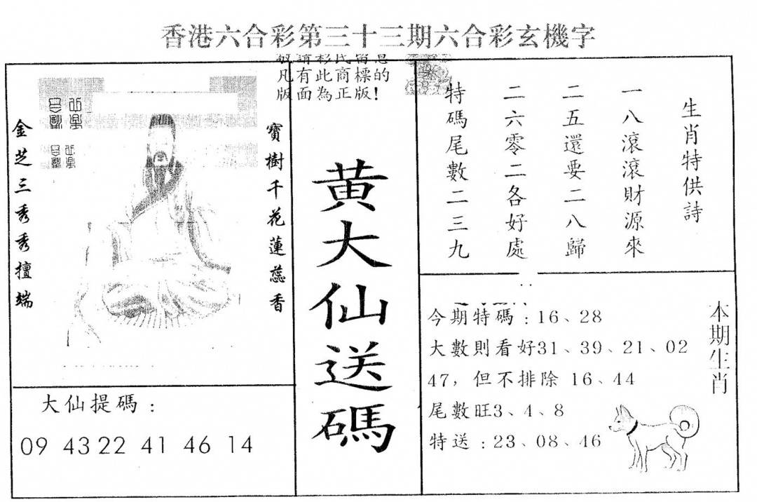 另版黄大仙灵码A