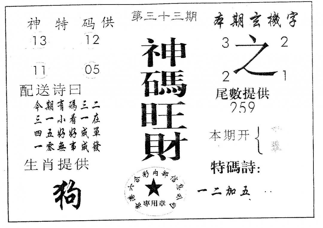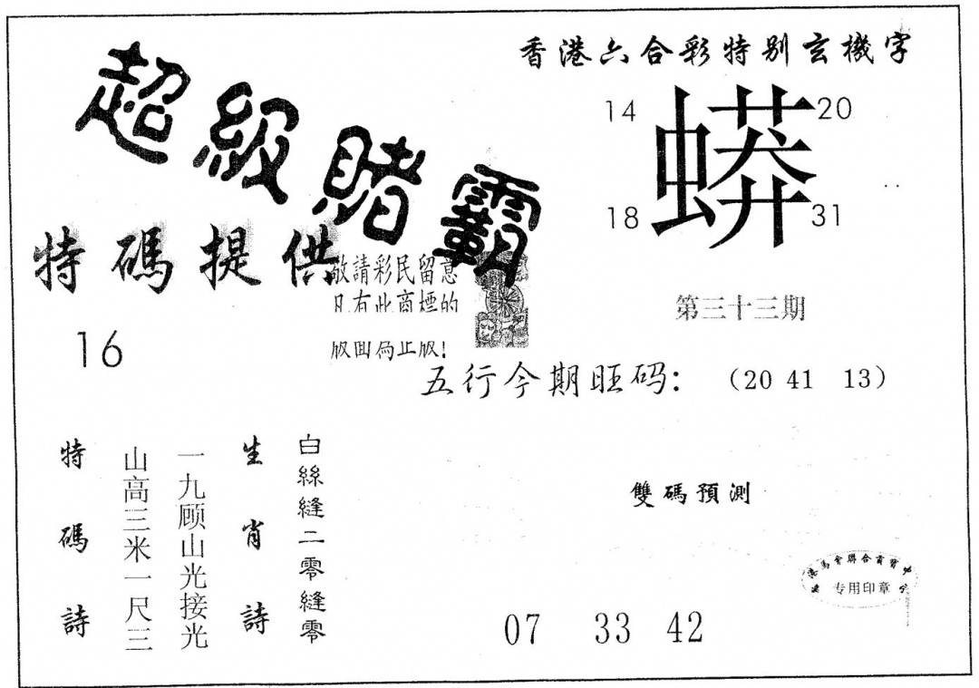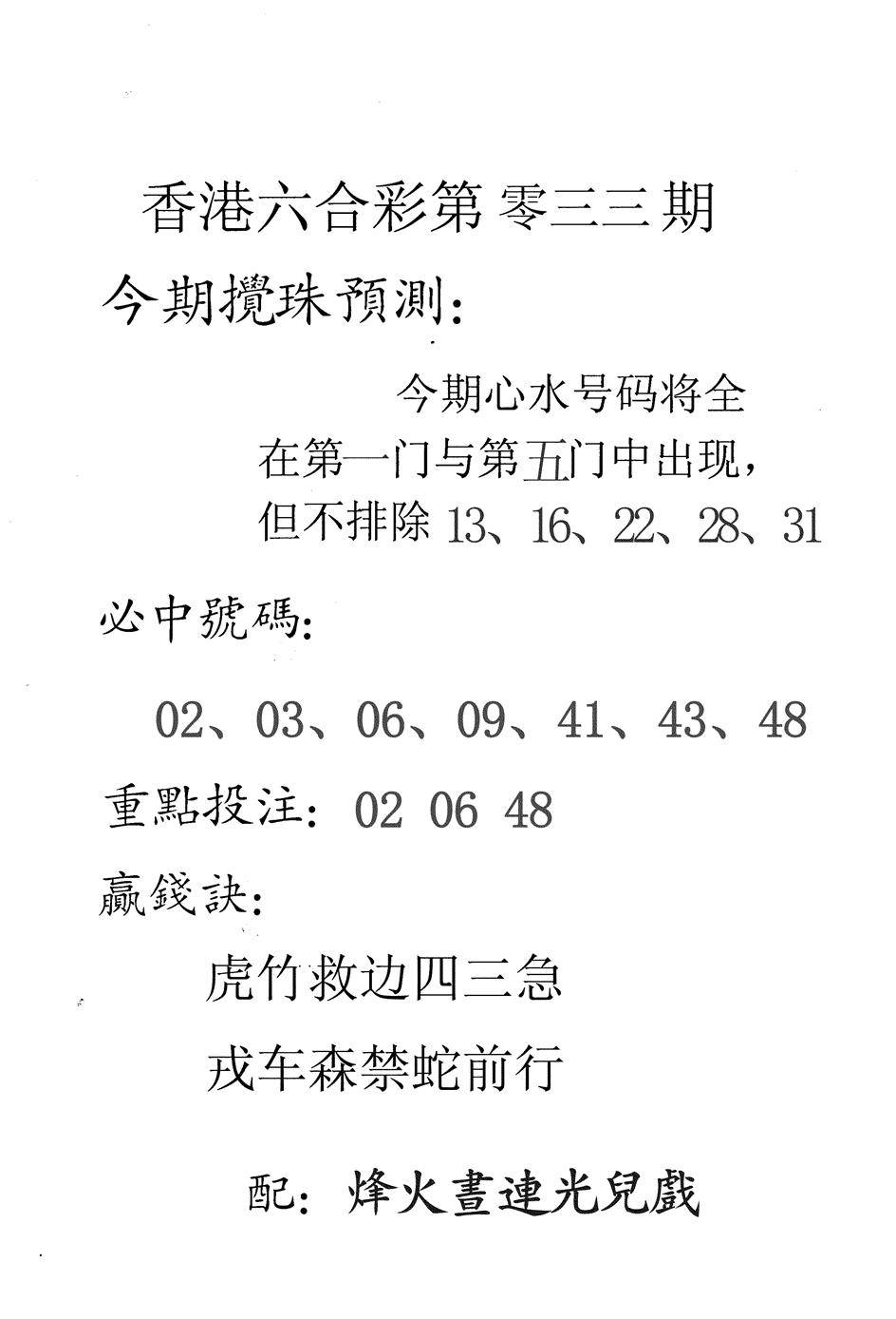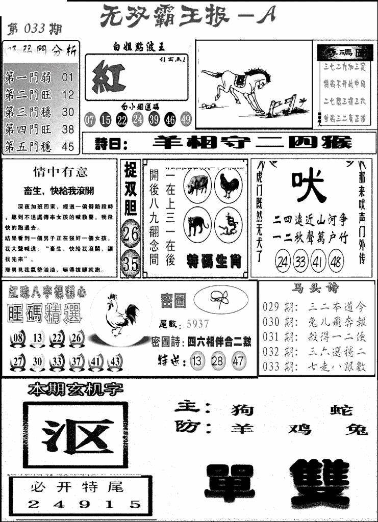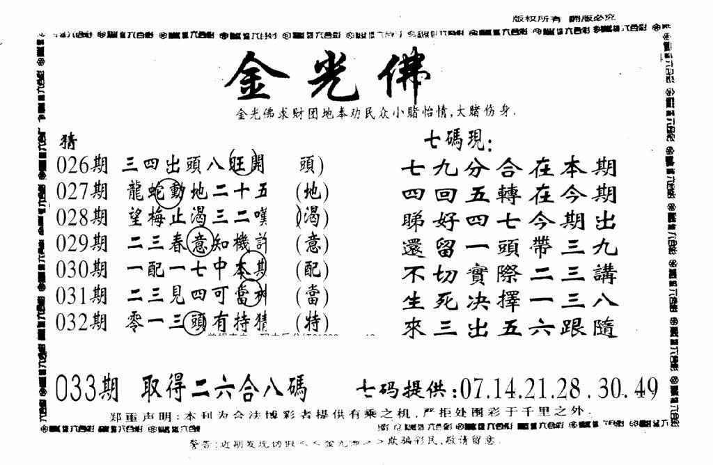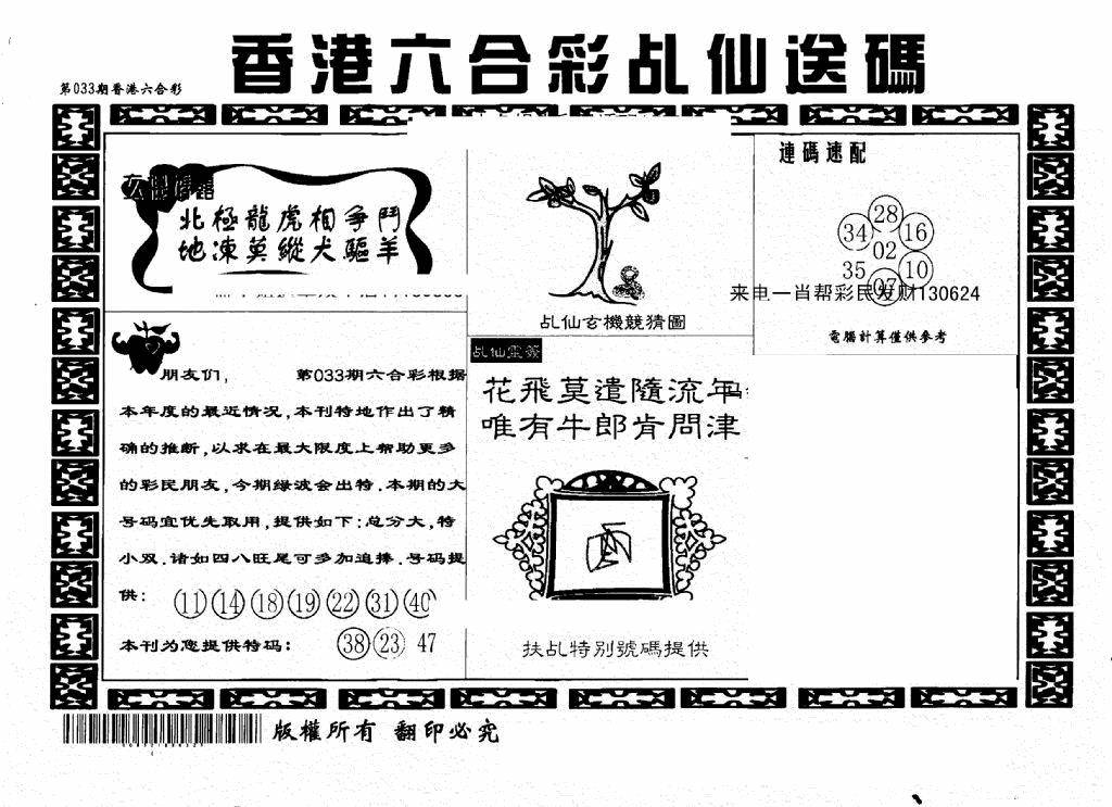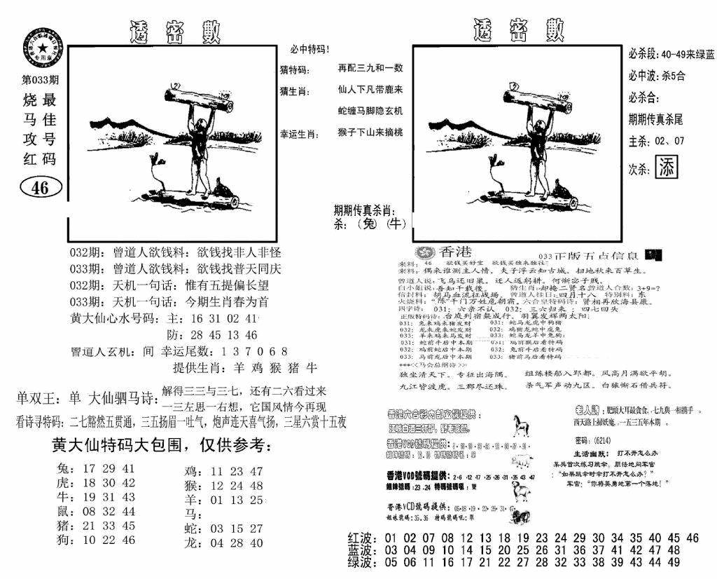 另版黄大仙灵码A