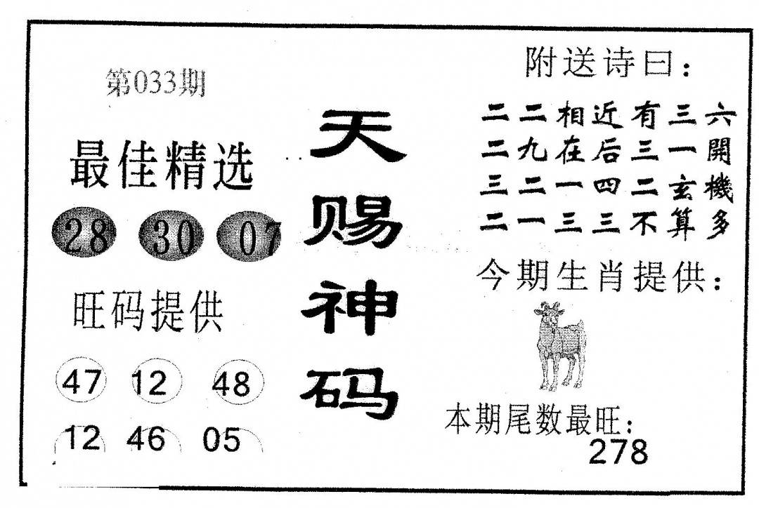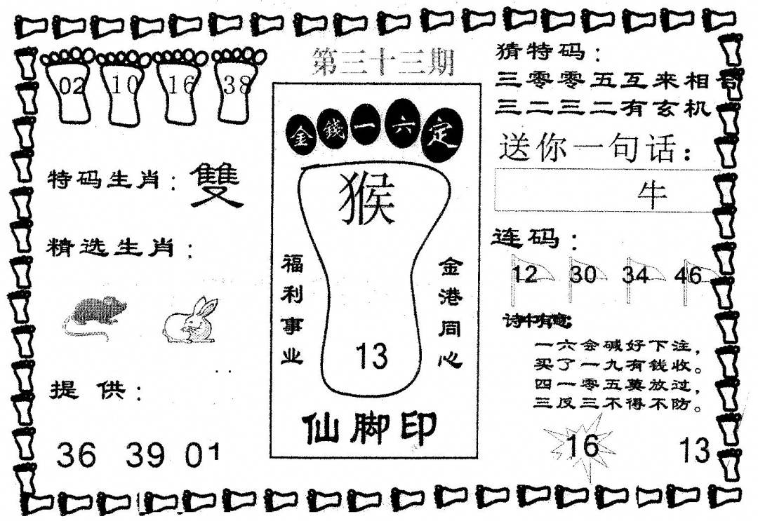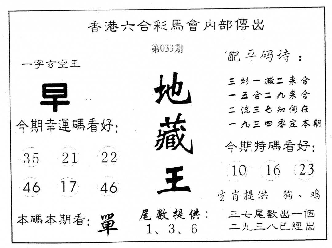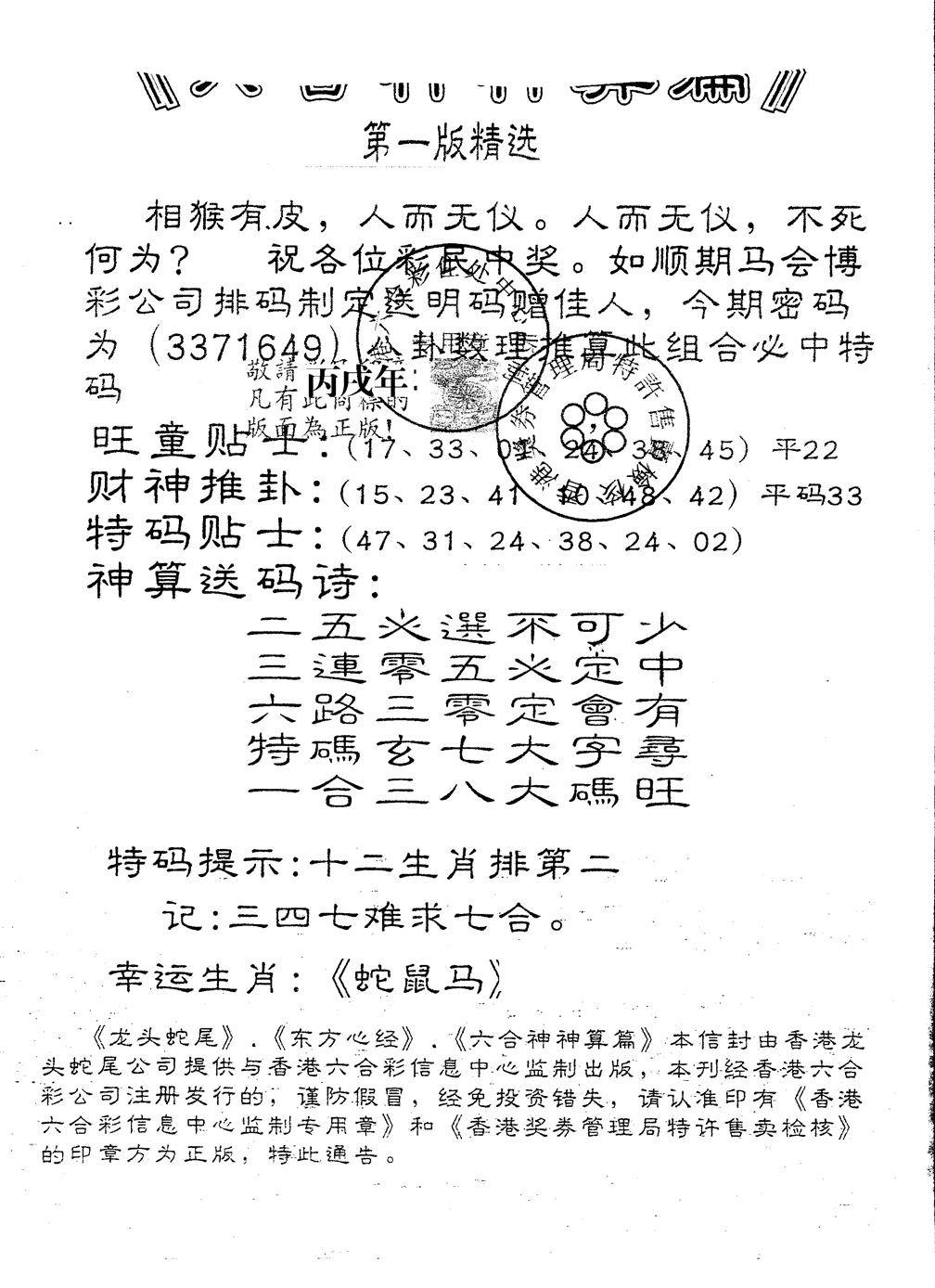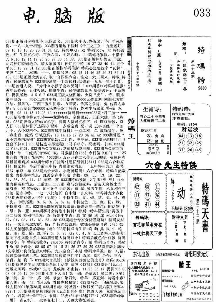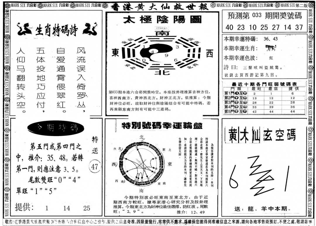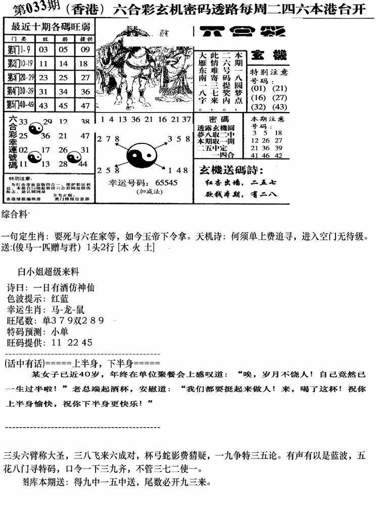 另版黄大仙灵码A