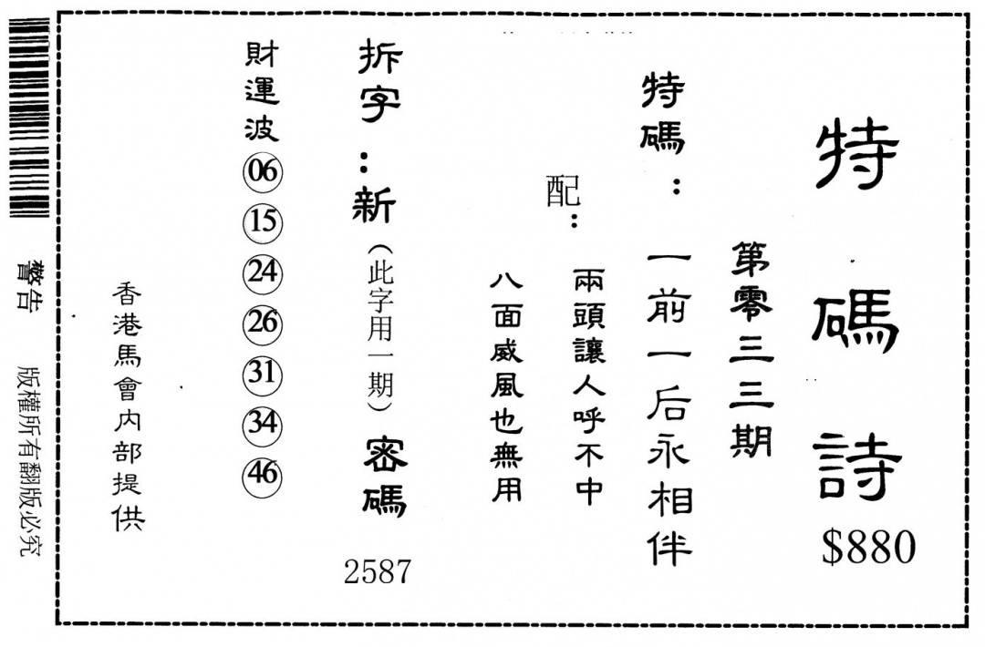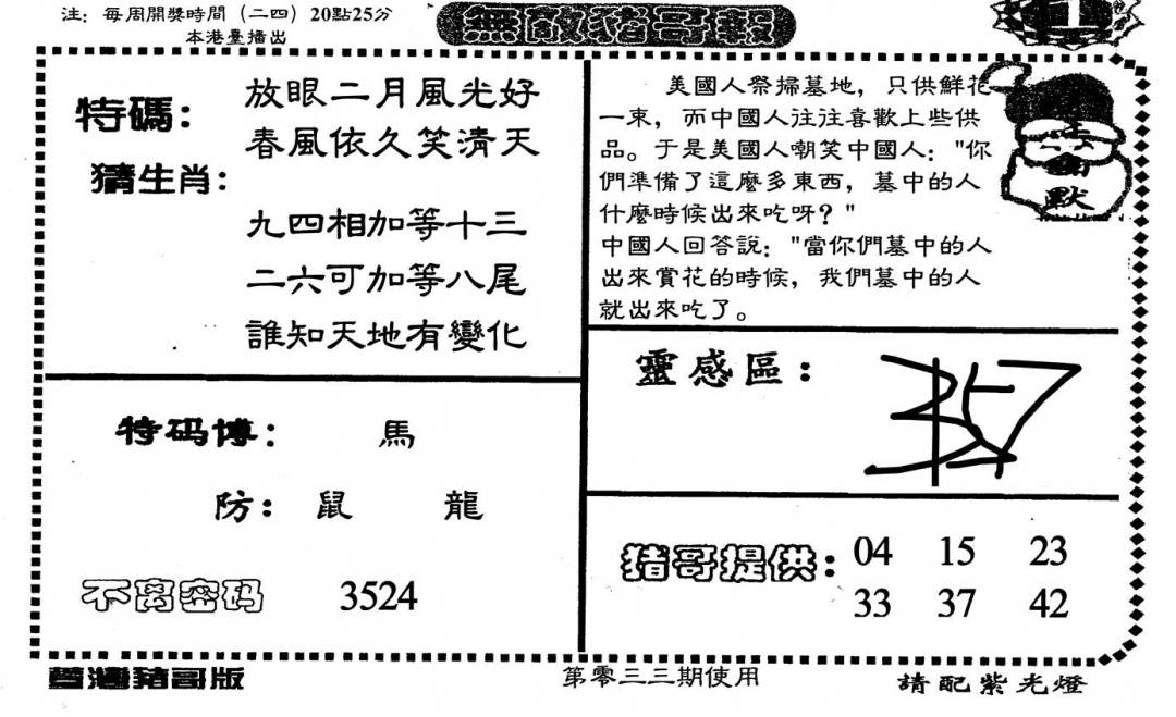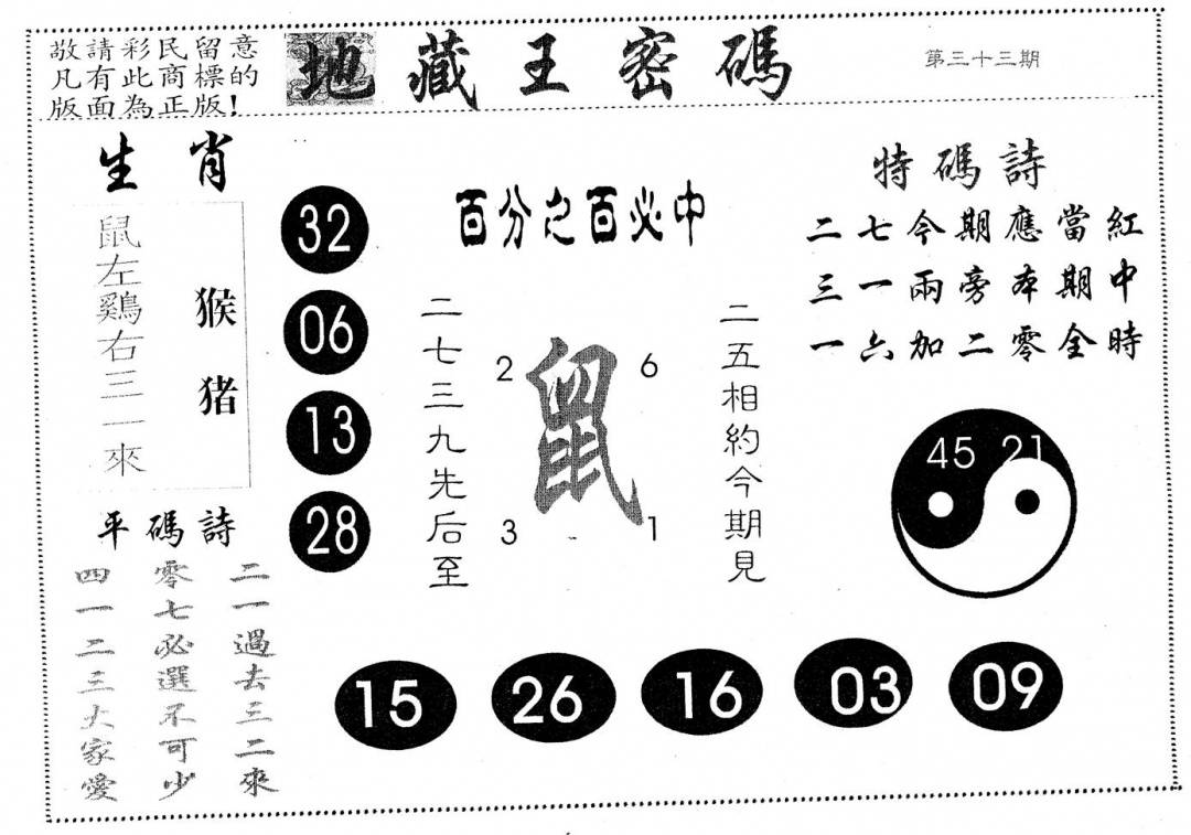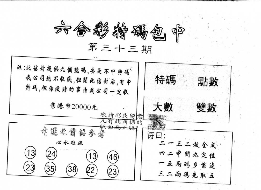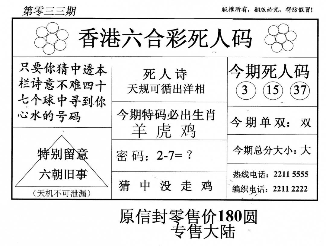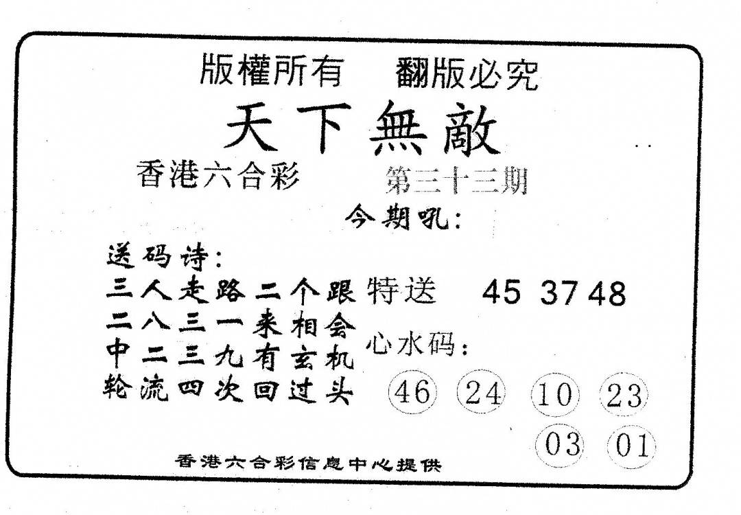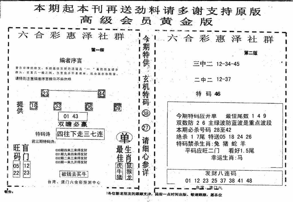 另版黄大仙灵码A