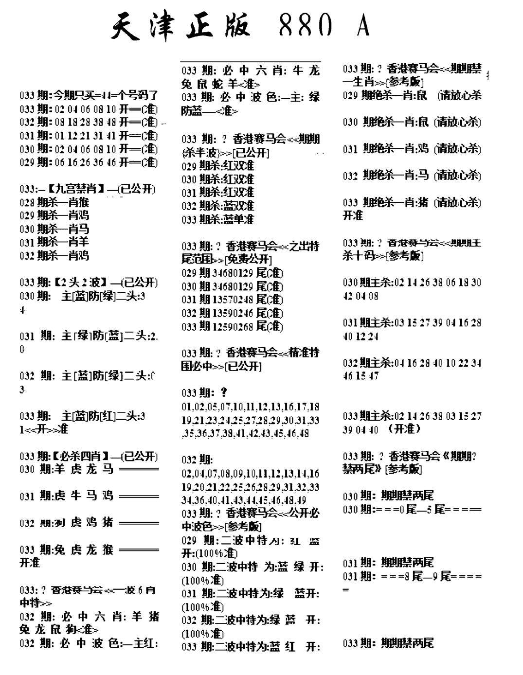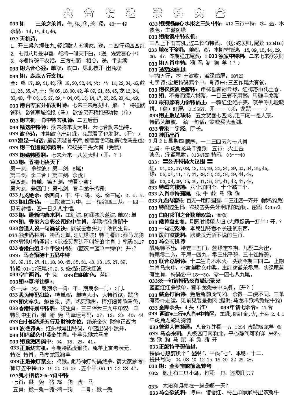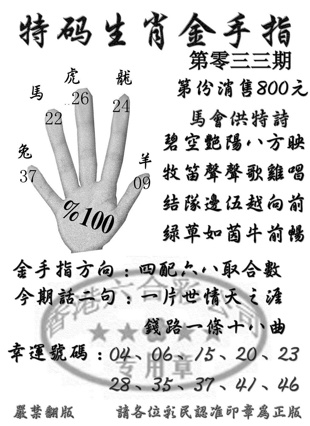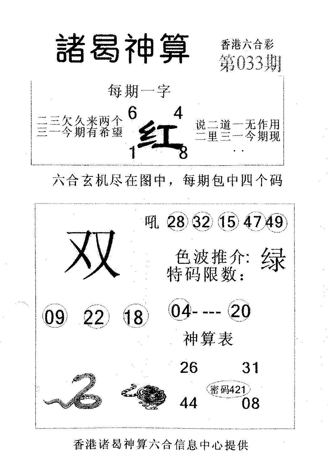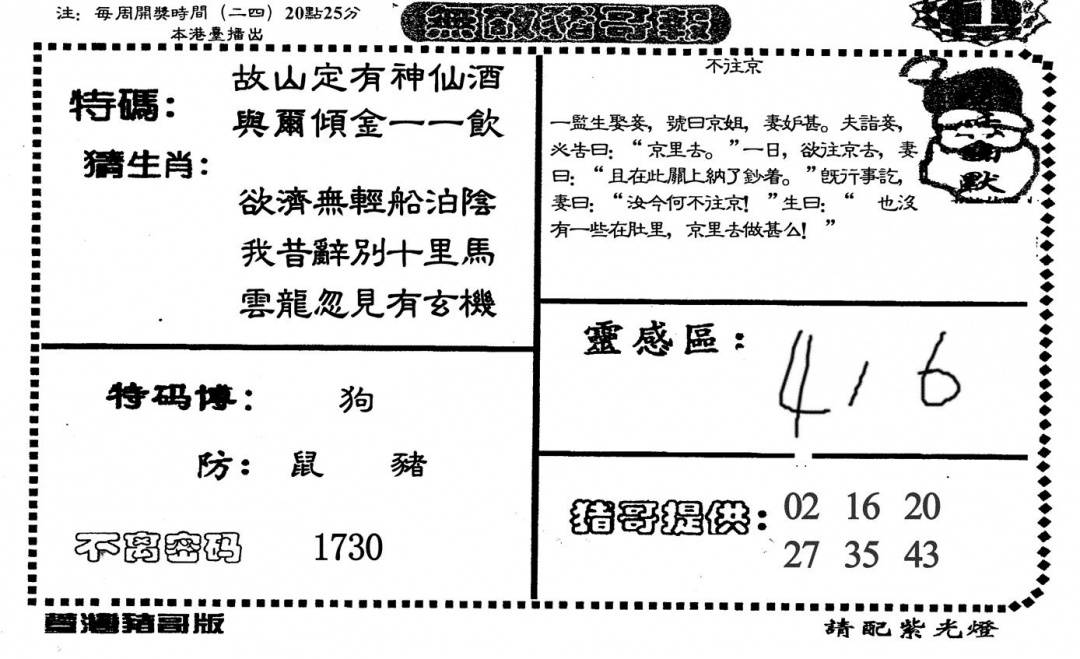 另版黄大仙灵码A