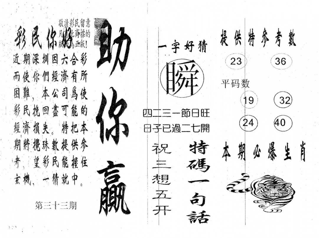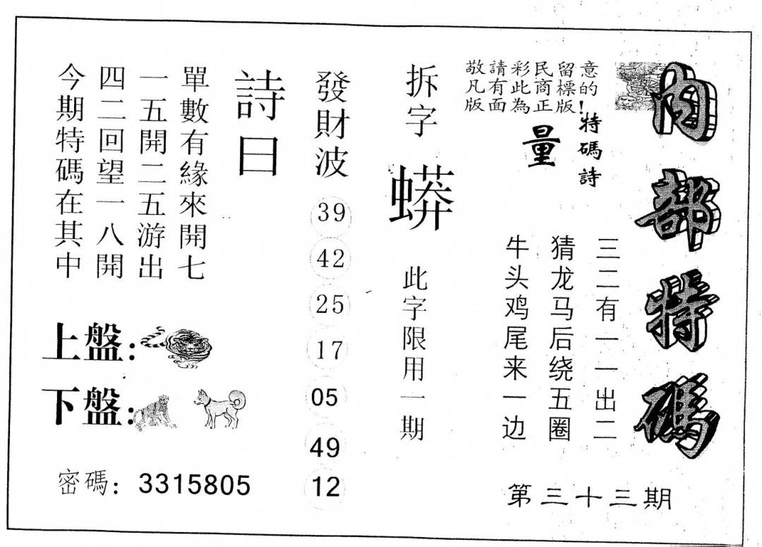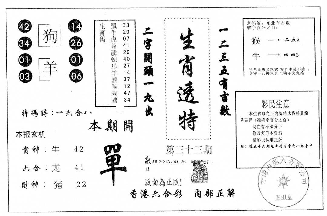 今日抓特码B(正版)