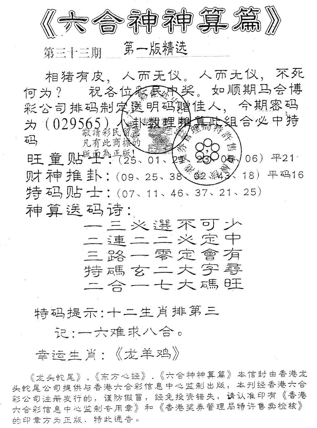 六合神算篇A