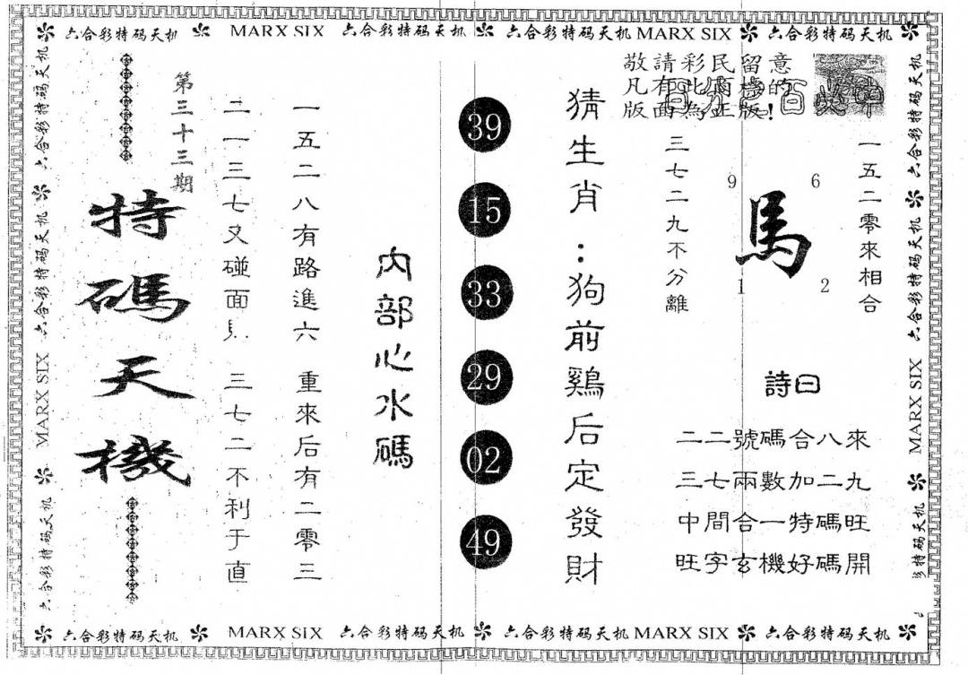 凤凰马经(信封)