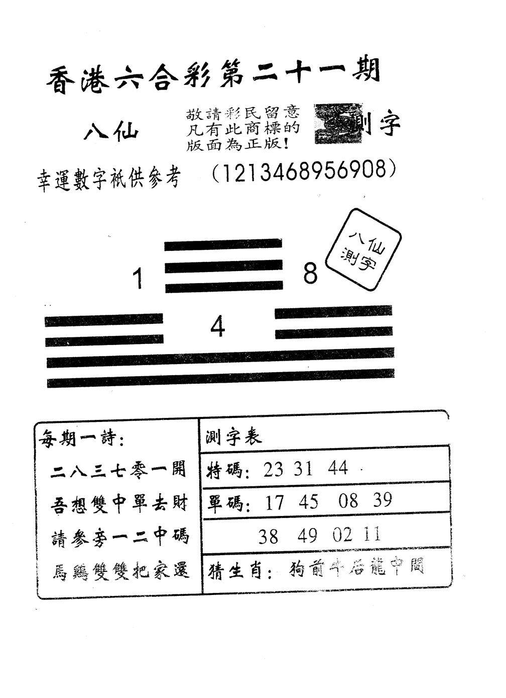 另版八仙测字