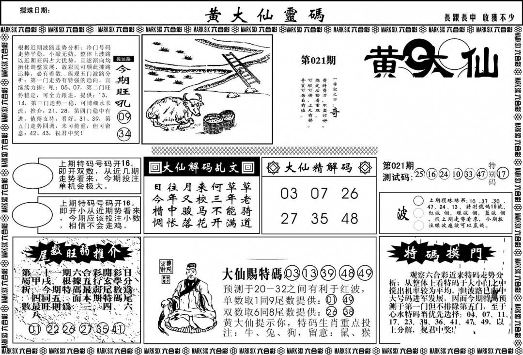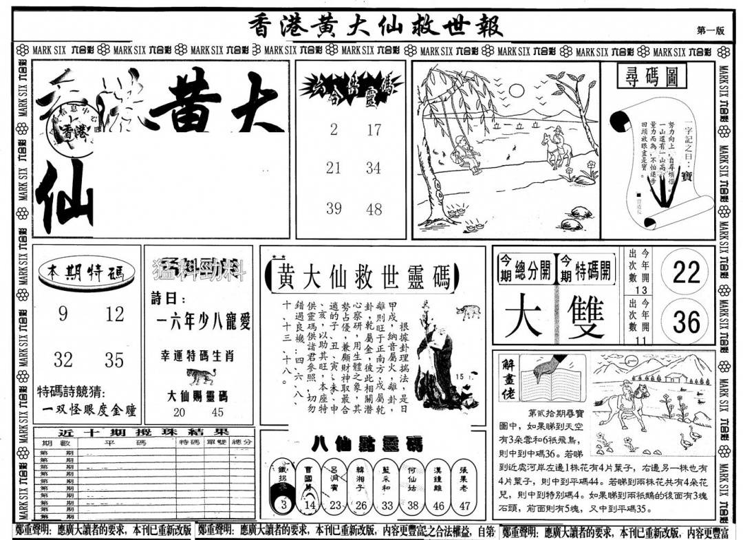 另版黄大仙灵码A