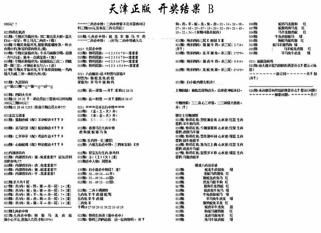 天津正版开奖结果B